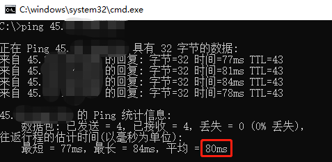 ping了下,ping值80毫秒,还是不错的