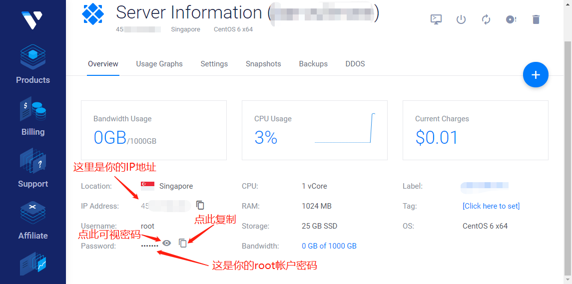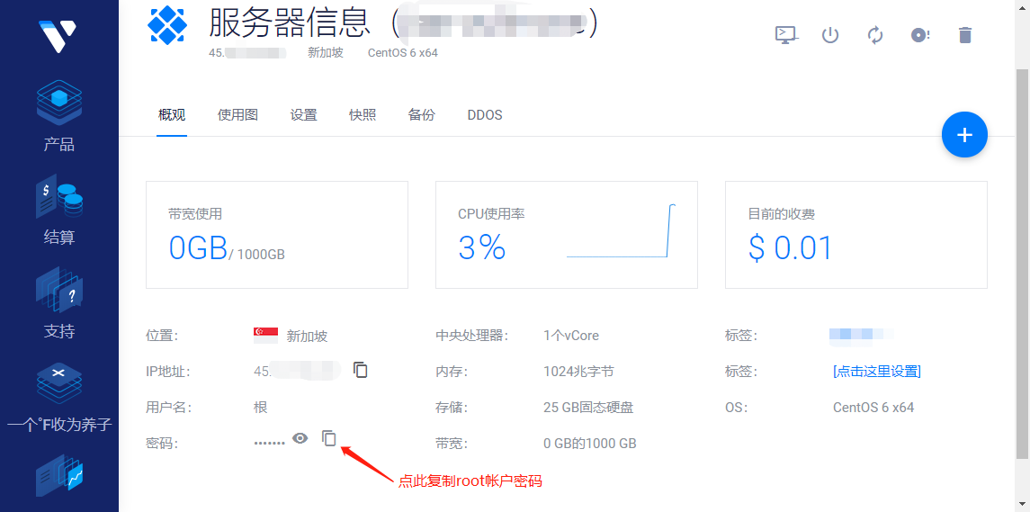 在这里面可以看到服务器(VPS)的基本信息