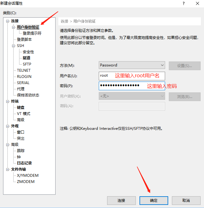 用户名:填root