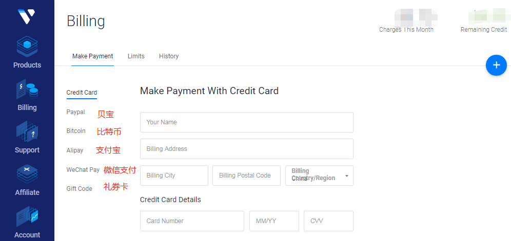 Vultr,在支持信用卡的基础上,还支持贝宝、比特币、礼券支付以外,还支持支付宝和微信支付,这对于没有信用卡和贝宝的部分中国的用户来说,十足的降低了购买门槛。更多的支付方式,确实方便了不少国内的用户。
